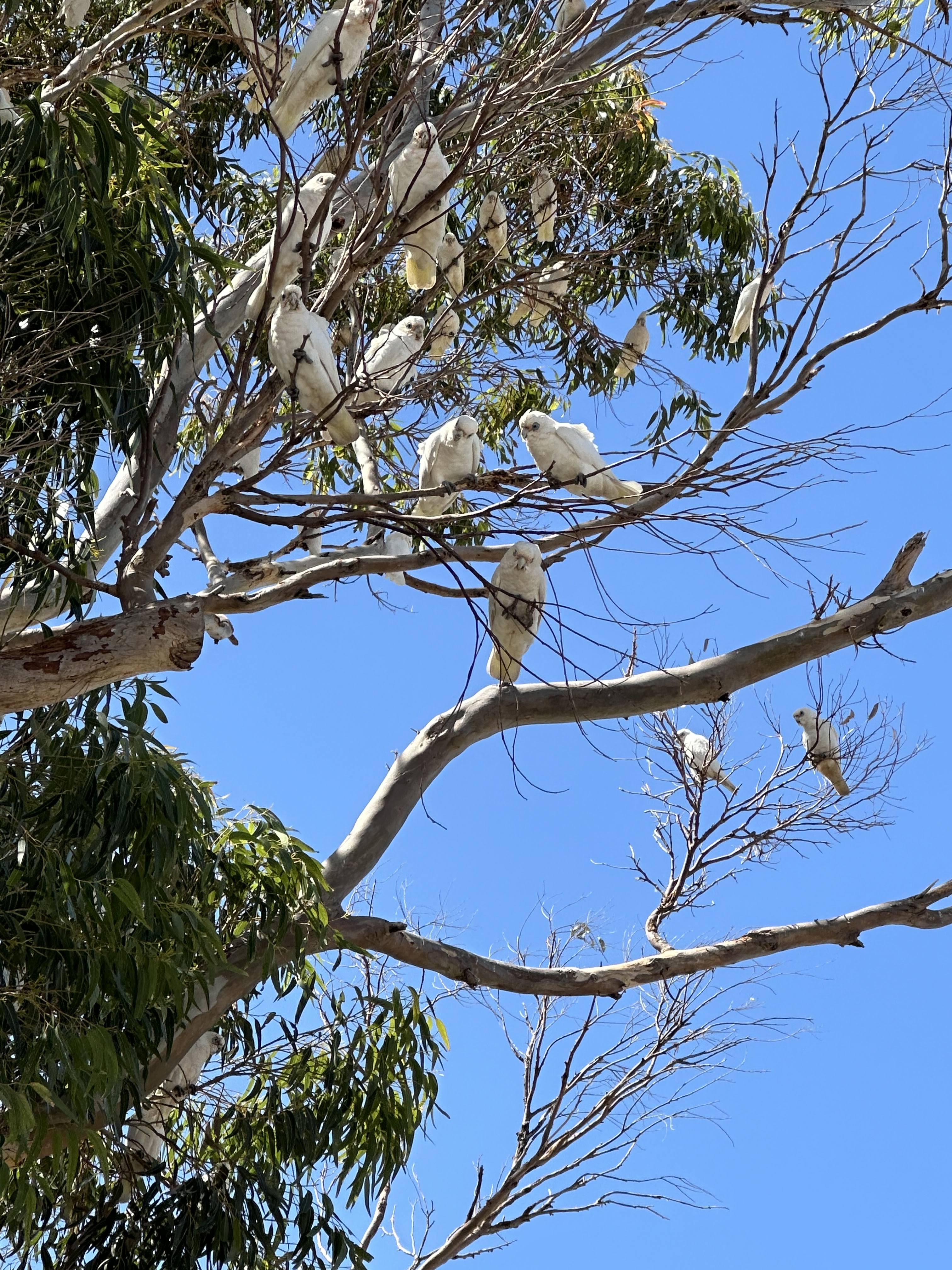 | See all these guys hanging out in the tree above our van. They are some kind of white parrot and boy were they a noisy bunch. |