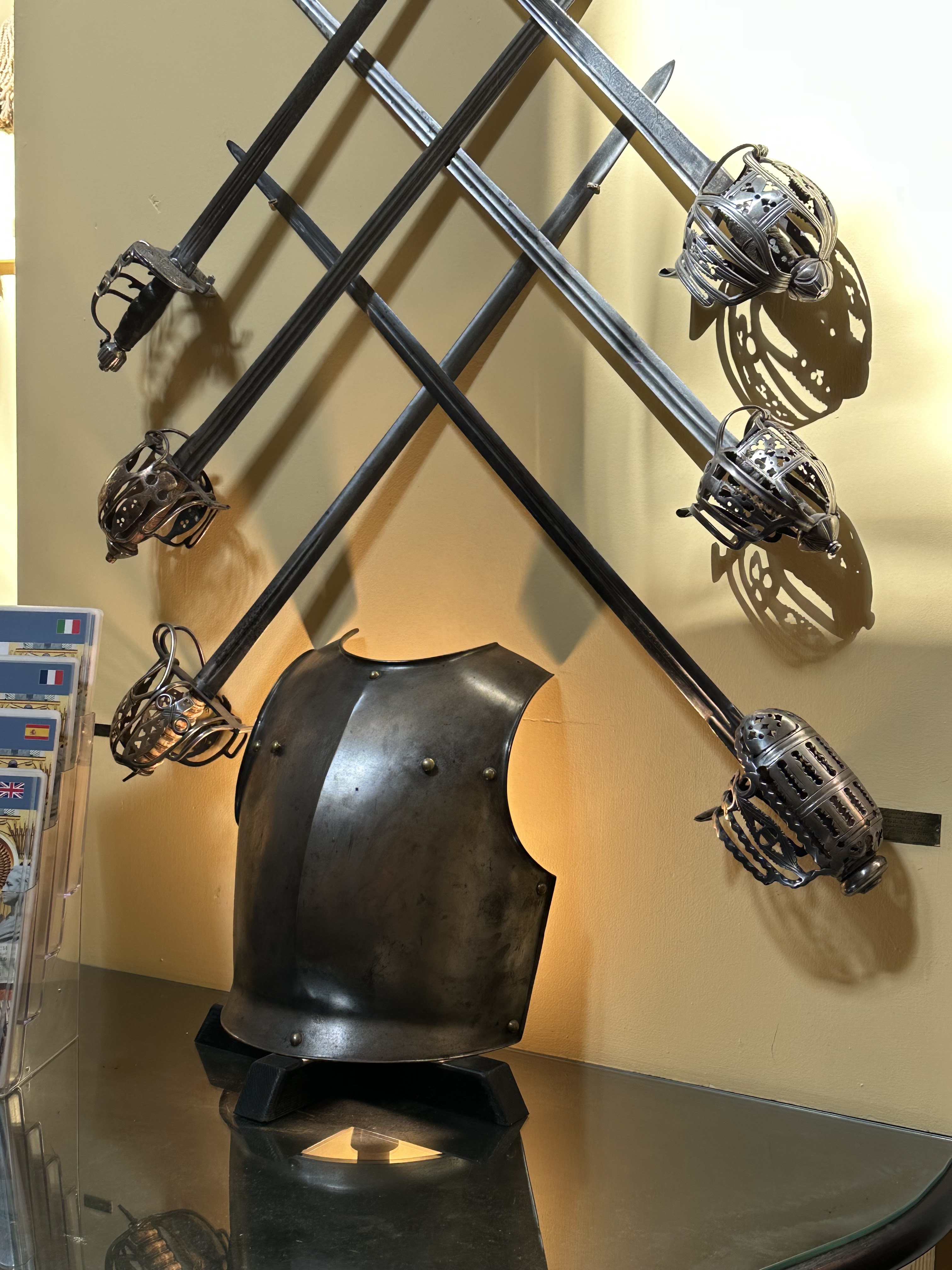 After an hour ride we arrived and I wasn’t disappointed. As we drove up the driveway and the castle came into view I could imagine the Crawleys riding up to be greeted by Shrimpy and his family. Elspeth told us that if a flag with a gold and black triangle and two white bars was flying from the turret it meant that the Duke was in residence, and sure enough it was. We entered and the first room we saw was the dining room. It was set splendidly with china, crystal and silver and several golden ship models which added to the sparkle of the table. The walls and ceiling were adorned with paintings and friezes and it was all very impressive. On small tables in two corners there were photographs taken during the filming of the DA episodes here. One was a photo of the late Dame Maggie Smith, the Dowager Countess (by the way my favorite character in the series) and the other of the TV family dining at the table. I asked one of the castle attendants if a piper still comes in to play as one did on TV. He told me that occasionally a piper comes to play for a special event, but it’s not the norm.